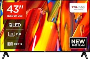 TCL 43V5C-UK 43Inch Full HD Smart QLED Direct LED TV with Android TV & HDR – Compatible with Google Cast & Google Home, Slim Design